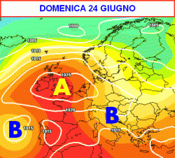Sabato 23 e domenica 24 giugno aria meno calda sull’Italia con temperature gradevoli e qualche temporale specie al centro e al meridione, più soleggiato al nord.