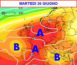 L’alta pressione delle Azzorre che ci ha interessato in questi giorni tenderà ad arretrare verso l’Europa occidentale a partire dalla giornata di venerdì 22 giugno.