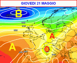 Giovedì 21 maggio tempo molto instabile al nord e in tendenza anche al centro, con temporali sparsi e calo delle temperature. Venerdì 22 e sabato 23 maggio instabile al centro, su parte del sud peninsulare e al nord-est (specie Emilia Romagna) con piogge, temporali e calo delle temperature. Tempo migliore al nord-ovest e sulle Isole. Domenica 24 e lunedì 25 maggio instabilità latente sulla nostra Penisola, con schiarite e possibili temporali specie nel pomeriggio e nelle zone interne e montuose. Da martedì 26 maggio nuovo peggioramento al nord, in estensione al centro-sud nella giornata di mercoledì 27 maggio.