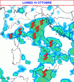 La prima mappa ci mostra la situazione attesa in Italia nelle ore centrali di lunedì 10 ottobre.