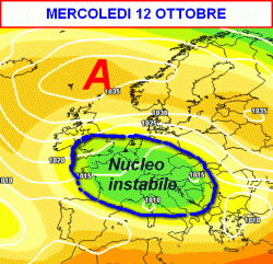 Sotto di esso avremo condizioni di marcata instabilità con rischio di rovesci e persino nevicate sulle Alpi sopra i 1700-1800 metri.