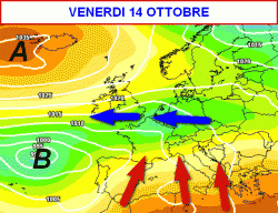 Venerdì 14 ottobre (terza mappa), potrebbe profilarsi una situazione interessante (dal punto di vista della pioggia) anche per il nord.