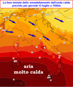 giovedì 13 luglio: temporali su est Lombardia, Triveneto, poi Emilia-Romagna, in trasferimento poi sul medio Adriatico, attivazione del Maestrale altrove con lenta attenuazione del caldo estremo.