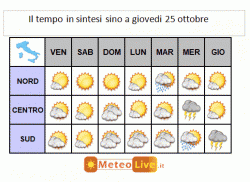 SINTESI PREVISIONALE sino a GIOVEDI 25 ottobre: