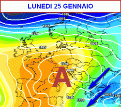 Ecco la linea di tendenza del tempo fino alla giornata di lunedì 25 gennaio in Italia.