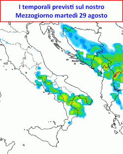 Potremo definirlo poco più di uno "strappo" al tessuto dell’anticiclone, sufficiente a portare tra martedì 29 e mercoledì 30 agosto, un po’ di instabilità sui rilievi del Mezzogiorno. Le regioni interessate saranno il Molise, la Basilicata, la Campania e la Puglia.
