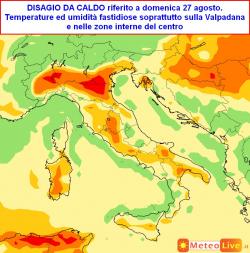 Sabato 26, domenica 27, lunedì 28: giornate di caldo intenso su tutto il nostro Paese, picchi elevati soprattutto durante le ore pomeridiane nelle zone interne pianeggianti, dove sono previste escalation della temperatura sino a +35°C/+37°C. Qualche nota d’instabilità lungo le Alpi. Brezze refrigeranti sulle coste.