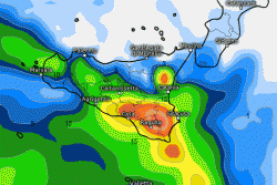Il vortice freddo che sta traslando verso la Tunisia porterà con sé precipitazioni anche intense a ridosso delle Isole Maggiori. Succederà soprattutto tra mercoledì e le prime ore di venerdì, poi il tempo dovrebbe rimettersi anche su queste zone. Violenti rovesci temporaleschi potrebbero colpire Agrigentino, Siracusano, Catanese, Ragusano e Gelese, ma anche Ogliastra e Cagliaritano in Sardegna, generando allagamenti come quello che mostriamo qui in figura a titolo di esempio.