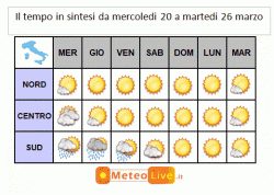Ecco la sintesi grafica del tempo sino a martedì 26 marzo: