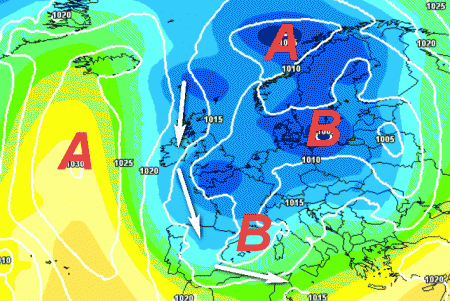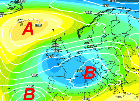 L’alta pressione che ci ha tenuto compagnia durante le ultime stagioni invernali, negando pioggia, neve e freddo, quest’anno si trova ben distante dalla scena italiana. Il colosso stabile si trova infatti in pieno Atlantico e con le sue puntate verso nord facilità la discesa di masse d’aria fredda in direzione dell’Europa centrale e il Mediterraneo.