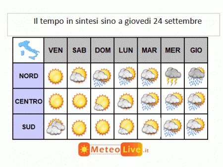 SINTESI PREVISIONALE sino a GIOVEDI 24 SETTEMBRE: