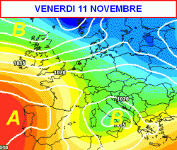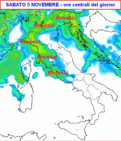 RIASSUMENDO: sabato tempo perturbato al nord e al centro, specie lungo il Tirreno, dove interverranno piogge e temporali anche intensi. Neve sulle Alpi a quote abbastanza elevate. Domenica 6 novembre ancora instabile al centro e al nord con rovesci al centro e sul nord-est animati da intense correnti di Libeccio. Lunedi 7 e martedì 8 novembre maltempo su parte del centro e al sud, più freddo, ma sereno, al nord. Tra mercoledì e giovedì veloce passaggio di un fronte da nord-ovest sull’Italia con rischio di neve a bassa quota al nord e lungo il versante adriatico. Venerdì, infine, migliora al nord, maltempo al sud e in Adriatico associato ad un clima ventoso e abbastanza freddo.