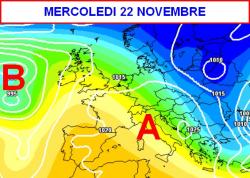 Martedì 21 e mercoledi 22 novembre: bel tempo ovunque e generale intensificazione nelle nebbie sulle pianure e nelle ore più fredde.
