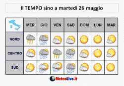 SINTESI PREVISIONALE SINO A MARTEDI 26 MAGGIO: