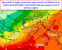 una figura di bassa pressione ricolma d’aria fredda di origine settentrionale oceanica. Il passaggio di questo sistema frontale sarà scortato da un ramo della corrente a getto, essendo lo stesso intimamente legato alla vivace attività della Semipermanente d’Islanda. Entro il pomeriggio di mercoledì 13, un sistema frontale di tipo freddo ormai a ridosso dell’arco alpino occidentale, determinerà un’accentuazione delle manifestazioni di instabilità sulle regioni settentrionali. Giovedì 14 luglio, ancora rovesci e temporali sulle regioni del nord e forse sulle zone interne dell’Italia centrale, ribasso della temperatura ad iniziare proprio dalle regioni settentrionali.