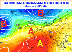 La terza cartina ci mostra quale potrebbe essere il risultato dell’ingresso delle sopracitate correnti, a seguito dell’atteso ridimensionamento pressorio sul Mediterraneo centro-occidentale.