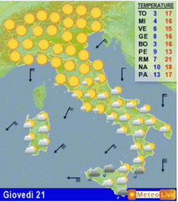 Solo la Sicilia, il sud della Calabria e forse l’estrema Sardegna meridionale verranno interessate da qualche pioggia, stante un blando ritorno freddo proveniente da est; su tutte le altre regioni il tempo sarà stabile, soleggiato e con temperature in graduale aumento di giorno.