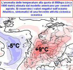 Sintesi previsionale da sabato primo agosto a venerdì 7 agosto: