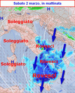 Sabato 2 marzo: piogge al mattino al sud e in Abruzzo, ma in attenuazione dal pomeriggio, bello e mite altrove.