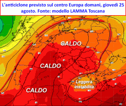 Sintesi previsionale da giovedì 25 a mercoledì 31 agosto: