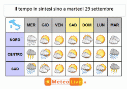 SINTESI PREVISIONALE sino a MARTEDI 29 SETTEMBRE: