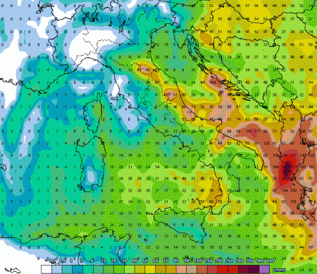 Dalle nostre mappe si osservano gli importanti quantitativi di pioggia che potranno cadere sulle regioni adriatiche e su parte del sud nei prossimi 5 giorni:
