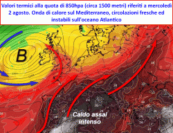 Il nostro Paese appare come una delle località d’Europa colpite più duramente dall’ondata di calore; alla quota di 850hpa (circa 1500 metri), gran parte della settimana vedrà la luce l’isoterma +25°C, degna delle ondate di caldo più intense e vigorose. Già a partire da domani, martedì primo agosto, questa isoterma sarà visitatrice abituale dei settori centrali italiani, laddove vengono previste temperature di tutto rispetto, con punte sino a +40°C su Toscana, Umbria, Lazio, Campania, Sardegna. L’ondata di caldo colpirà duro anche il settentrione, il primato del caldo sull’Emilia Romagna, anche qui tra martedì primo agosto e sabato 5, saranno possibili valori sino a +40°C, forse anche superiori.