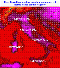 Si preannunciano giorni di canicola su gran parte del nostro territorio nazionale, picchi sino a +40°C sulla Valpadana e nelle valli interne del centro. Qualche nota d'instabilità lungo la fascia alpina ma senza grosse conseguenze.
