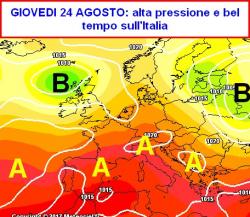 Da martedì 22 fino a venerdì 25 agosto bel tempo e caldo su tutta l’Italia.