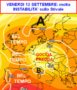 Venerdì 12 settembre: instabile ovunque, poi migliora al nord nel corso della giornata e concentrazione dei fenomeni al centro-sud. Ventoso e temperature in ulteriore calo.