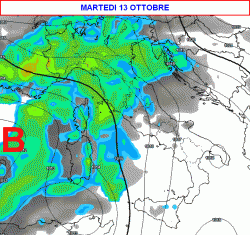 Il meridione e il medio versante adriatico usufruiranno invece di una tregua, che probabilmente verrà interrotta da nuove piogge nella serata di mercoledì 14 ottobre.