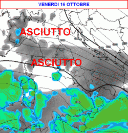 Riassumendo: sabato 10 ottobre tempo perturbato al centro e al sud con piogge anche intense e temporali, più asciutto al nord e sulla Toscana, ventoso; domenica 11 ottobre ancora rovesci al sud e sul Medio Adriatico, più sole altrove; lunedì 12 ottobre bello al centro-sud, nubi al nord e sulla Toscana occasionalmente associate a qualche pioggia locale; martedì 13 e mercoledì 14 ottobre occasione per piogge e rovesci al nord e al centro, in trasferimento anche al meridione mercoledì sera; giovedì 15 e venerdì 16 ottobre instabile al sud e sulle Isole con rischio di piogge e temporali, tempo asciutto e in parte soleggiato altrove.