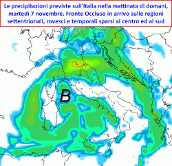 Martedì 7: ancora instabilità sparsa con rovesci e temporali al centro ed al sud, soprattutto su Sardegna, medio e basso Tirreno. Ritornante occlusa sulle regioni del nord, con NEVE a bassa quota. Valori termici freddi al nord e sulla Sardegna (ove soffierà teso il Maestrale), più mite al Mezzogiorno.