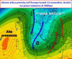 L’inizio della settimana successiva (lunedì 13) potrebbe esordire sotto un flusso di correnti fredde settentrionali che veicoleranno sul nostro Paese masse d’aria ARTICA. Ancora una situazione preludio di INSTABILITA’ sulle adriatiche ed il Mezzogiorno, freddo secco sulle regioni del nord.