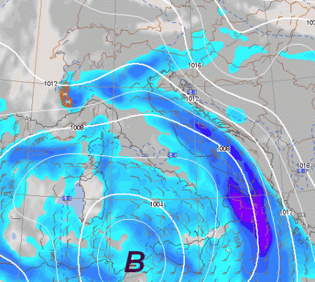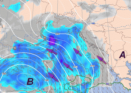 Ed ecco i fenomeni previsti nella notte su domenica: questa volta sembra colpito soprattutto il settore jonico e il basso Adriatico, ma in misura minore con il fronte occluso anche medio Adriatico e Valpadana: