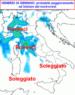 Sintesi previsionale fino a venerdì 26 gennaio.