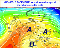 L’espansione franca dell’alta pressione verso la nostra Penisola avverrà proprio a partire da giovedì 8 dicembre (seconda mappa).