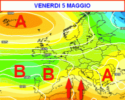 La medesima situazione sarà presente in Italia nella giornata di giovedì 4 maggio, mentre venerdì 5 assisteremo ad un nuovo cambiamento.