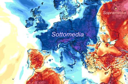 L’effimero interludio di alta pressione occorso negli ultimi due giorni, è destinato a battere rapidamente in ritirata; se ne accorgono gli abitanti delle regioni settentrionali che in queste ore sperimentano un aumento della nuvolosità e questo pomeriggio anche qualche temporale su Alpi, Prealpi e zone di pianura settentrionali. Una concatenazione di eventi che prelude ad un passaggio perturbato piuttosto importante previsto in Europa nel fine settimana, laddove una circolazione di aria fredda artica, porterà con sè una riduzione sensibile delle temperature. Ecco le anomalie termiche al suolo previste lunedì dal modello americano su scala europea: