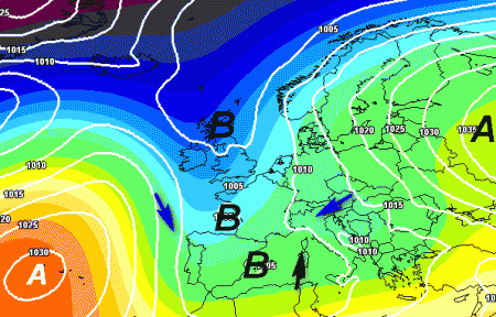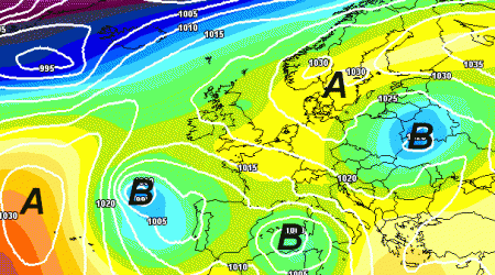 Si nota peraltro la presenza dell’anticiclone russo-scandinavo, pur non propriamente in gran forma, mentre l’anticiclone delle Azzorre rimane di quinta in Atlantico. Si nota anche quella massa fredda sull’est europeo, che però non riuscirà a raggiungerci in modo significativo.