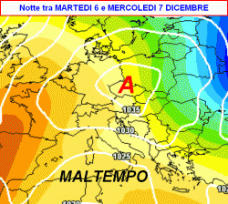 RIASSUMENDO: martedì 6 dicembre piogge sparse su est Sardegna, Sicilia occidentale e Golfo di Taranto, nubi sparse altrove con qualche pioggia in Abruzzo e belle schiarite sulle Alpi. Mercoledì 7 e giovedì 8 dicembre migliorerà il tempo sulla Sardegna, ancora piogge su Sicilia, Calabria, settore ionico e Salento, nebbie in arrivo sulle pianure del nord, per il resto in prevalenza soleggiato. Da venerdì 9 fino a lunedì 12 dicembre stabilità ovunque con sole, mitezza sui monti, nebbia e inquinamento in pianura.