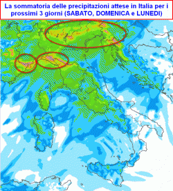 Terminata questa "tre giorni perturbata" gli accumuli saranno consistenti sulla Liguria (specie le zone interne) e sulla fascia prealpina centro-orientale (in modo particolare tra l’alto Veneto, il Trentino e il Friuli). Pioverà molto anche sulle regioni del medio e alto Tirreno, specie sulla Toscana, mentre procedendo verso sud le piogge diverranno scarse se non del tutto nulle sulle regioni estreme.