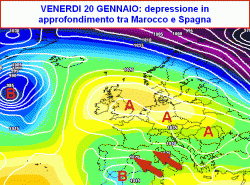 L’aria fredda punta ad ovest, scava una depressione sulla Penisola Iberica e parte il cosiddetto "addolcimento", operato da correnti sciroccali (ovvero da sud-est) che tendono a sostituire quelle gelide nord-orientali.