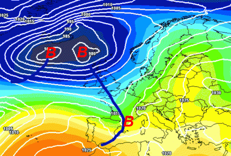 Notiamo l’approccio della perturbazione all’Italia ospitata all’interno di una deformazione del flusso, ovvero una saccatura. Il fronte in questione darà piogge sparse specie al nord e sul Tirreno, mentre il meridione e il versante adriatico non riceveranno molti fenomeni.