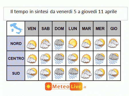 SINTESI previsionale sino a GIOVEDI 11 aprile: