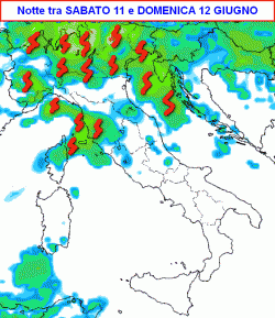 Giovedì 9 giugno instabile su tutta l’Italia con temporali sparsi, più intensi al centro e sul nord-est. Venerdì 10 giugno temporanea tregua a parte gli ultimi temporali al meridione, in via di attenuazione. Tra sabato 11 e domenica 12 giugno temporali al centro-nord alternati a pause, tempo migliore altrove. Tra lunedì 13 e mercoledì 15 giugno generale instabilità con temporali specie nelle zone interne e montuose, in attenuazione mercoledì al centro-sud.