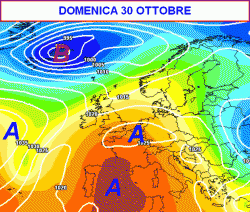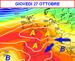 RIASSUMENDO: martedì 25 ottobre piogge sparse al nord e sull’alta Toscana, bello e caldo sul resto del centro e al sud, con caldo anomalo su Sicilia e Sardegna. Mercoledì 26 ottobre peggiora al nord-est e al centro con piogge e rovesci; in serata peggiora anche al sud, meno interessato il nord-ovest e la Sardegna. Giovedì 27 ottobre instabile al meridione e in misura minore sul medio Adriatico con piogge sparse e rovesci, bello e più fresco sul resto d’Italia. Venerdì 28 ottobre ancora qualche pioggia sulle regioni estreme, per il resto soleggiato. Sabato 29, domenica 30 e lunedì 31 ottobre bel tempo ovunque e con temperature miti durante il giorno. Possibili nebbie sulle pianure di notte e al primo mattino, in via di attenuazione.