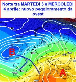 Tra martedi 3 e mercoledi 4 aprile: nuovo peggioramento al nord e poi anche al centro ad iniziare dal Tirreno con altre piogge, persistenza di tempo mite e asciutto al sud.
