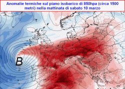Infine lunedí 12 marzo ecco farsi avanti una nuova perturbazione con ribasso termico a partire dal nord (da confermare).