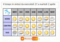 SINTESI previsionale testuale sino a MARTEDI 2 aprile: